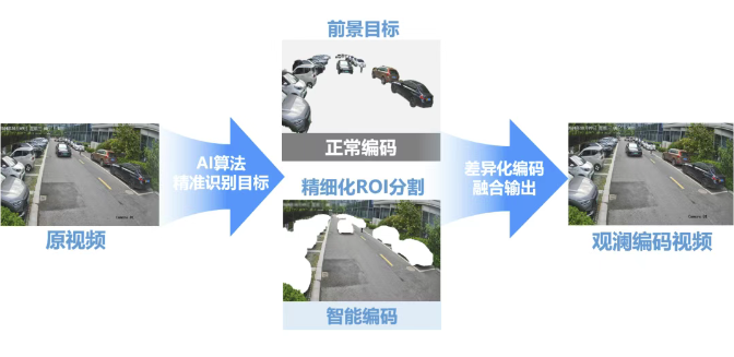 海康威視觀瀾編碼技術(shù),大模型深度理解能力與像素級分割技術(shù),構(gòu)建“智能識別-精準(zhǔn)ROI分割-差異化編碼”全鏈路優(yōu)化體系,且兼容H.265標(biāo)準(zhǔn)解碼設(shè)備。