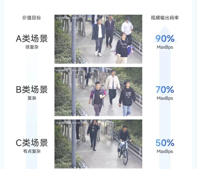 · 動態(tài)感知:實時捕捉場景運動幅度與細(xì)節(jié)密度,按最大碼率MaxBps百分比分配資源,保障復(fù)雜場景畫質(zhì)無損。