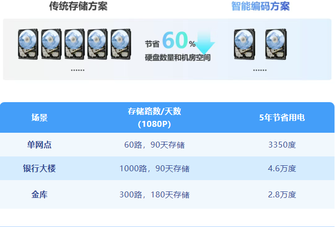 銀行場景下,相較于傳統(tǒng)H.265編碼,觀瀾編碼方案可實現(xiàn):