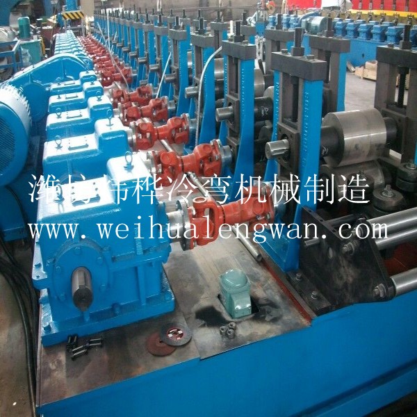 成型主機:沖壓后的板料經輥輪及輔助輥,逐漸輥壓成護欄立柱型材