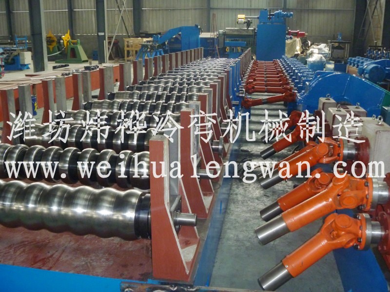 煒樺冷彎公司生產鋼板糧倉成型機可生產單張或卷帶,不同客戶要求不同機型結構