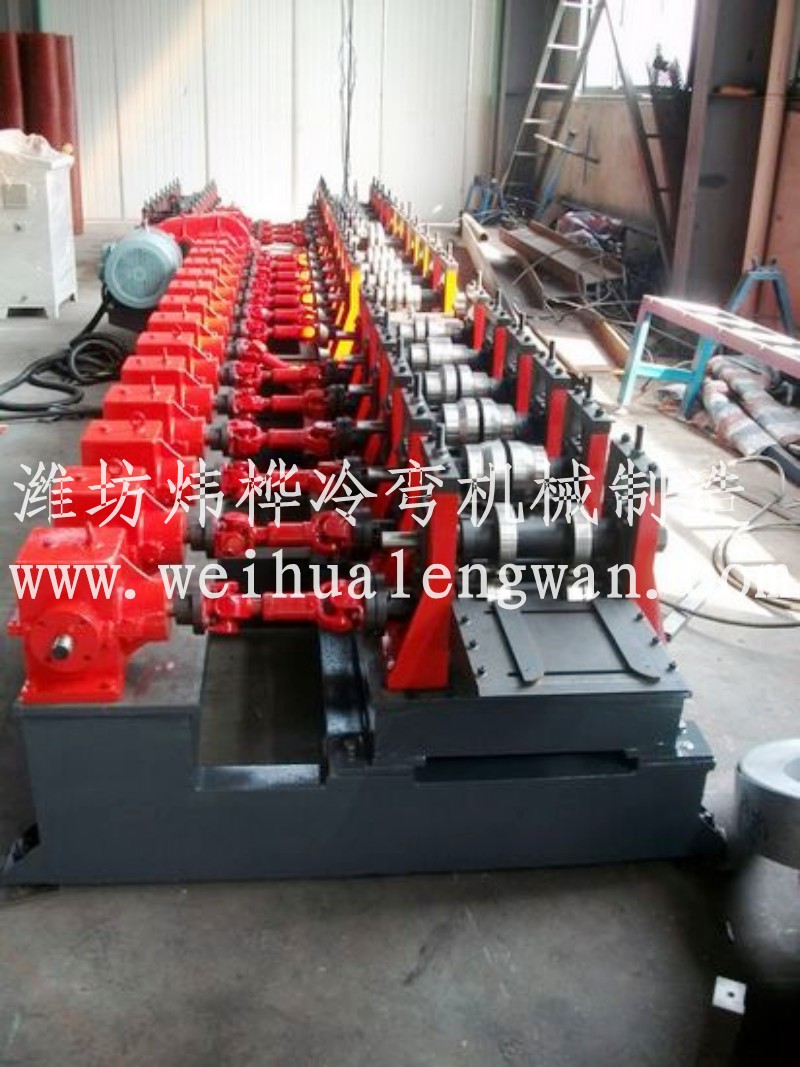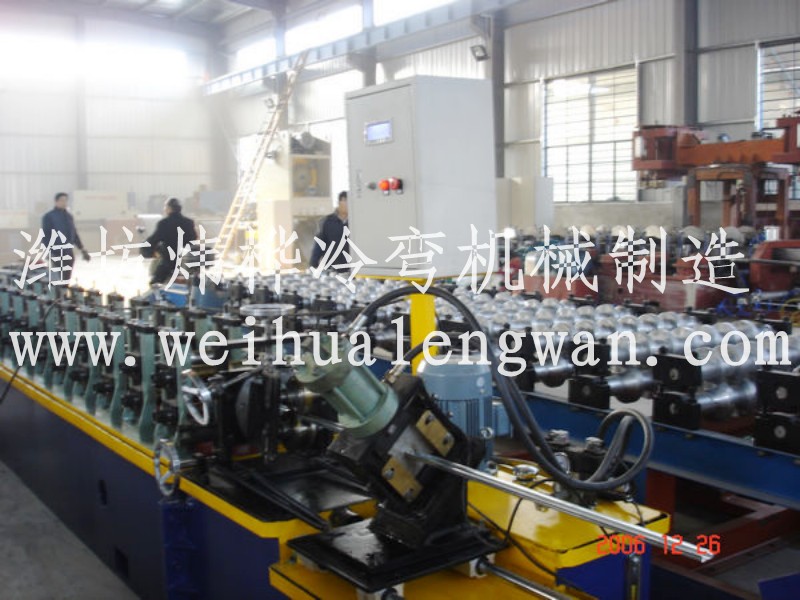 設(shè)備主要由設(shè)備由放料機(jī)、導(dǎo)向機(jī)架、成型主機(jī)、校正裝置、定尺切斷部分、收料臺(tái)、電器控制部分等組成