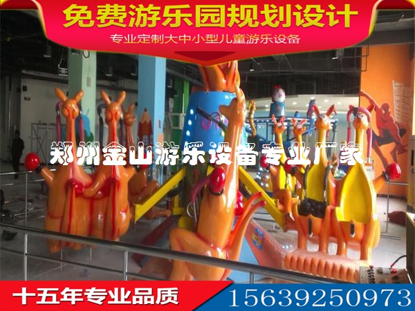 袋鼠跳游樂設備,是一款外觀模仿可愛迷人的澳大利亞袋鼠設計制作而成的趣味彈跳設施。該設備外觀靚麗新穎、結(jié)構穩(wěn)固安全、乘坐感受舒適有趣。非常的適合所有消費者游樂嬉戲玩耍,深受廣大游客喜愛。他以經(jīng)典的袋鼠造型、完美的跳躍深受小朋友的喜愛。袋鼠跳這款兒童游樂園設備突破了傳統(tǒng)的旋轉(zhuǎn)類游樂設備,在旋轉(zhuǎn)的同時伴隨著勁爆的音樂不斷跳躍,給游客帶去無限的刺激。該設備投資少、占地面積小、見效快。安裝方便是理想的游樂園投資項目。