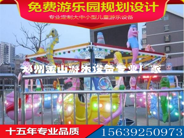 海洋漫步"是在桑巴氣球和搖頭飛椅的基礎(chǔ)上精心改良的一款中小型兒童游樂設(shè)備.以神秘的海洋做為背景,又將神秘、優(yōu)美的美人魚;人類的好朋友——調(diào)皮的海豚,可愛的海螺、海馬、小貝殼等等海洋生物呈現(xiàn)在在家眼前,加上傾斜、起伏的運動軌跡設(shè)計,帶領(lǐng)著大家漫步在海洋之中,以海豚為伴,以美人魚為友,感覺著海洋的無窮魅力和擋不住的吸引力。
