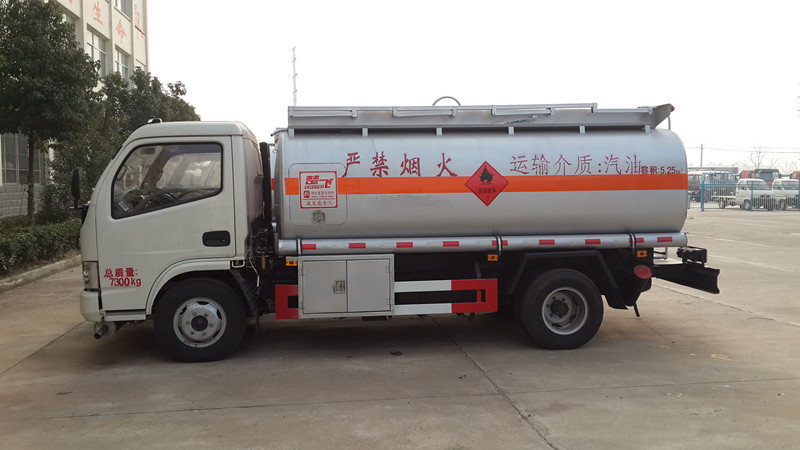 罐體有效容積:5.25立方米,類項號:3,運輸介質(zhì):汽油,密度:700千克/立方米,罐體外形尺寸(長×寬×高)(mm):1、加油機內(nèi)裝于罐體前部時:4000(含加油機倉800)×1860×1260,2、加油機外裝在車架一側(cè)時:4000x1750x1120;隨底盤選裝駕駛室.側(cè)防后防采用Q235材質(zhì)焊接連接,后部防護斷面尺寸(mm):50×140,后部防護離地高度(mm):490;加油機型號及生產(chǎn)廠家:型號:HS1812B 生產(chǎn)廠:托肯恒山科技(廣州)有限公司.型號:CS20D1110F 生產(chǎn)廠:正星科技有限公司.型號:SK22QF222A 生產(chǎn)廠:北京三盈聯(lián)合石油技術(shù)有限公司;安裝具有衛(wèi)星定位功能的行駛記錄儀.僅選裝該底盤裝盤式制動器和限速裝置,限速80km/h及子午線輪胎;ABS系統(tǒng)生產(chǎn)廠家/型號:東風電子科技股份有限公司汽車制動系統(tǒng)公司/36BG13-30010.