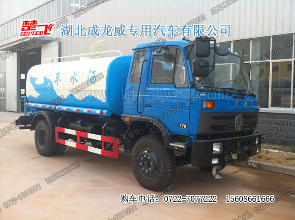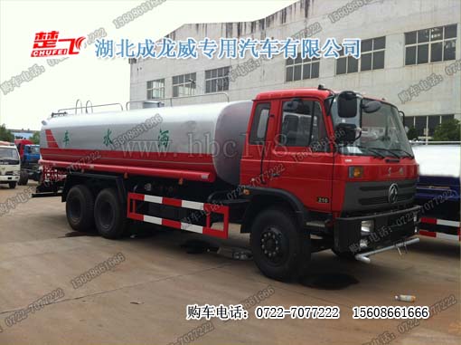 東風天錦灑水車;罐體容積;10-15噸 發動機:康明斯6缸190馬力;康明斯6缸185馬力;康明斯4缸180馬力;軸距:4700mm;輪胎:9.00-20;發動機帶渦輪增壓、中冷器;排半駕駛室(可翻轉)
