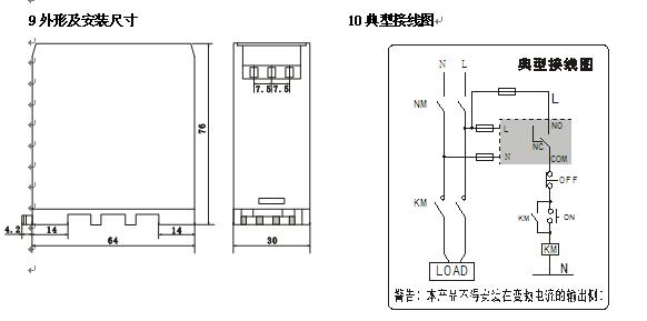 1)過壓保護:指被保護線路電壓高于設定值,延時3~8S動作,恢復回差為6~15VAC。