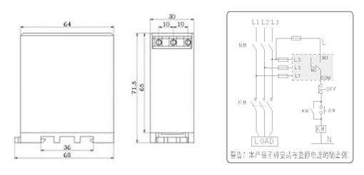 2.. .L1、L2、L3三相缺相時,紅燈亮,綠燈不亮,繼電器釋放;電壓正常時恢復,綠燈亮,繼電器吸合;3. L1、L2、L3接三相交流電壓,NO、COM為常開觸點;NC、COM為常閉觸點。直接使用導線連接