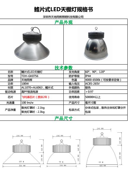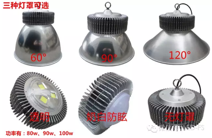5、配光方式多種,有60度、90度、120度燈罩;同時(shí)配備兩種PC透光件,透明和奶白防眩透光件