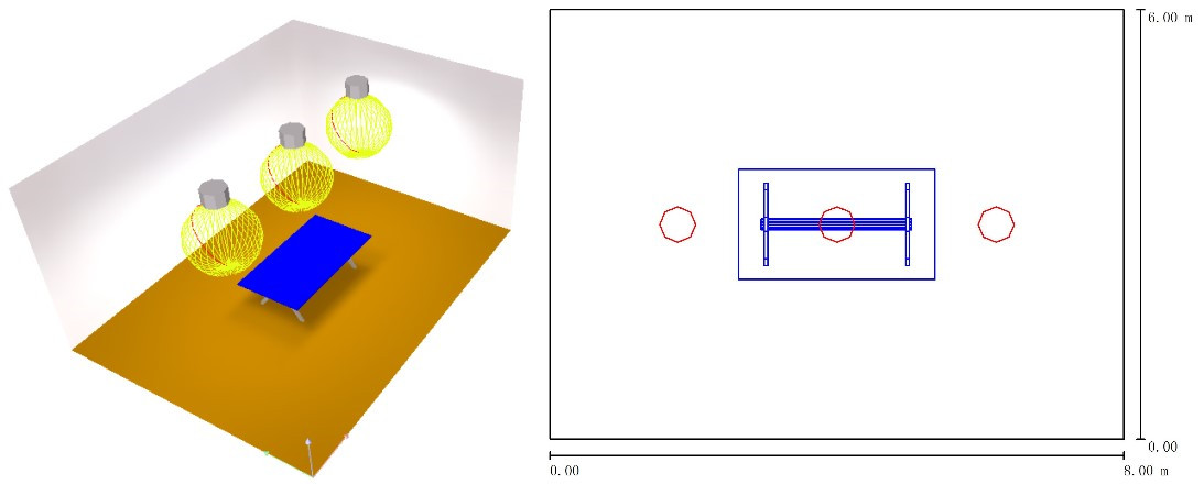 燈位安裝高度應(yīng)在3米以上,如能滿足臺(tái)面照度500lx以上,燈位越高越好。(可有效減少眩光量)
