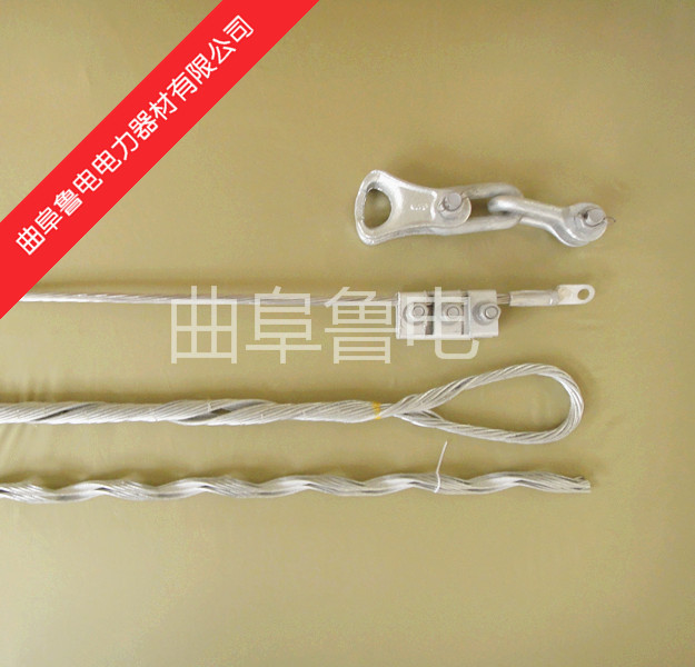 耐張預絞絲:預絞絲是由高強度、耐腐蝕的鋁包鋼制成,預絞絲在加工時組合成一束,其內側敷一層微粒金剛砂,以增加磨擦接觸,對光纜減少壓力,增耐張線夾的握力,在安裝的起始位置涂有彩色標記,便于識別及快速安裝。