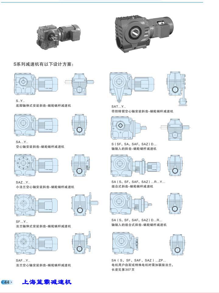 S系列斜齒輪蝸輪減速機:S/SA/SAF/SF: S37/S47/S57/S67/S77/S87/S97