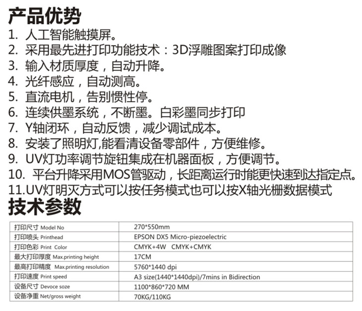 專業生產進出口UV打印機,UV平板彩印機 皮革彩印機,T血衫印花機,手機外殼彩印機,亞克力打印機,支持任何平面物體上直接噴繪打印彩色,LOGO 。 3D立體打印機打印模型。