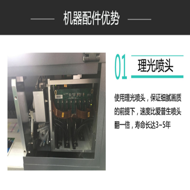 1)UV平板打印機無需制版、不受花型、套色限制、一次成型、風格無限自由、操作簡單、功能齊全,就如同使用家用打印機一樣簡單。