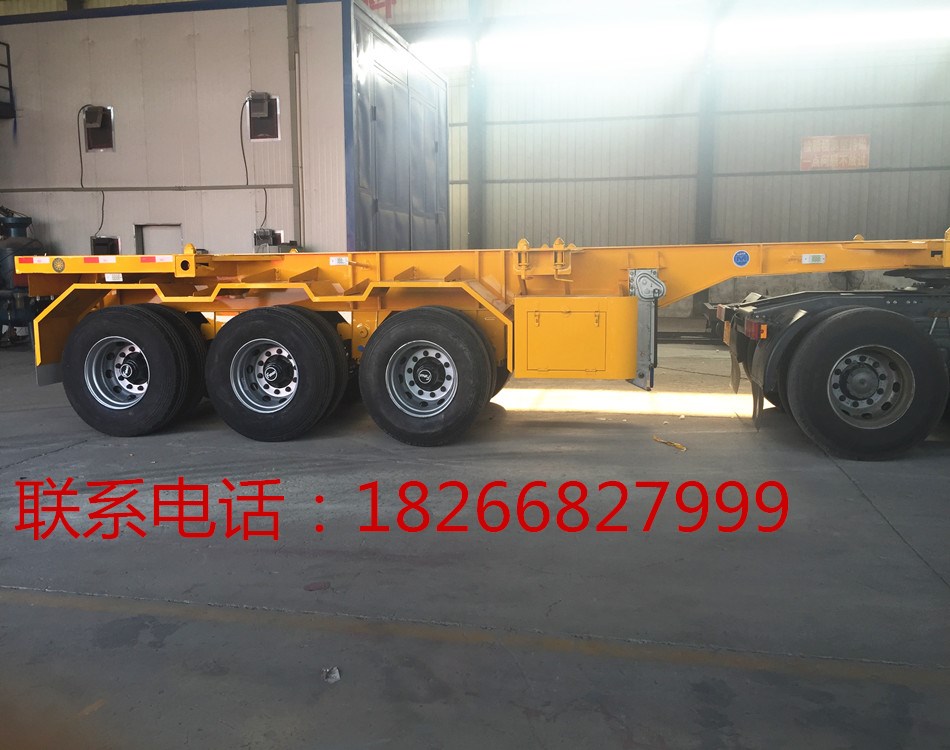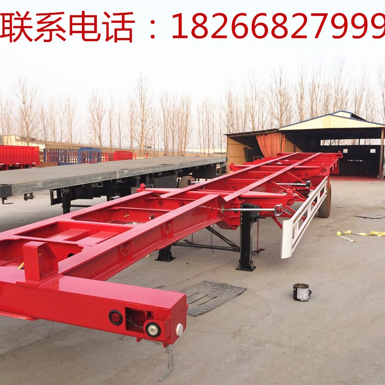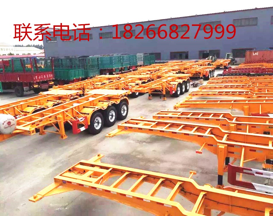 集裝箱骨架式運輸車:也叫集裝箱運輸半掛車,龍骨架、骨架車、集裝箱拖車 、集裝箱骨架半掛車,用于20、40、45、48、53英尺等各種集裝箱的運輸