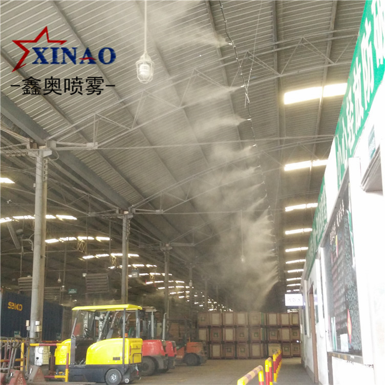 高壓噴霧系統(tǒng)是利用高壓柱塞泵將已經(jīng)過濾凈化處理過的水加壓至40-70kg/cm2,然后通過高壓管道將加壓的水輸送到微細(xì)霧化噴嘴,并高速旋轉(zhuǎn),以1~15μm的超微霧粒子噴射到整個空間,超微霧粒子在空氣中吸收熱量,汽化、蒸發(fā),空間濕度增大,空氣的溫度降低。