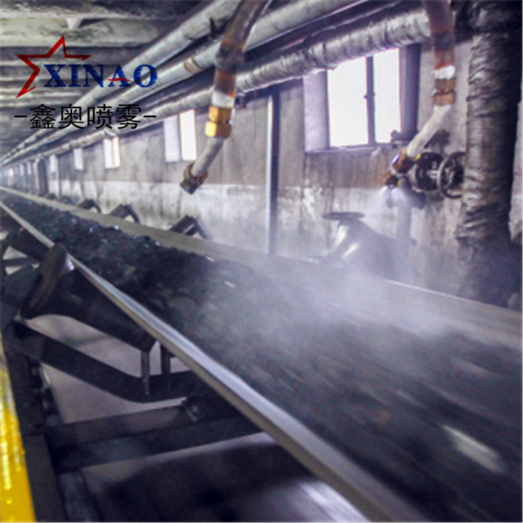 針對自動輸煤系統及諸多粉塵物料運輸系統轉運點處封閉難度大,在運行過程中造成粉塵飛揚,嚴重污染現場環境的難題,我公司推出的自動噴霧系統實施重力降塵和水霧壓塵,利用不同形狀和霧化角度的噴嘴在塵源處的上方或周邊進行噴霧,由于噴出的水霧顆粒小、霧化好,與粉塵相互快速凝聚成顆粒沉積下來,達到消除粉塵、改善環境的目的。 實踐證明,粉塵可以通過水或化學劑被粘結而聚結增大,但那些最細小的粉塵只有當水滴很小(如水霧)或加入化學劑(如表面活性劑)以減小水的表面張力時才會聚結成團。如果水霧顆粒直徑大于粉塵顆粒,那么粉塵僅僅跟隨水霧顆粒周圍的氣流運動,水霧顆粒和粉塵顆粒接觸很少或者根本沒有接觸從而達不到抑塵作用。如果水霧顆粒和粉塵顆粒大小接近,粉塵顆粒隨氣流運動時與水霧顆粒碰撞、接觸而粘結在一起。水霧顆粒越小,聚結的可能性越大,隨著聚結的粉塵團變大加重,從而很容易降落。水霧對粉塵的“過濾”作用就這樣形成了。
