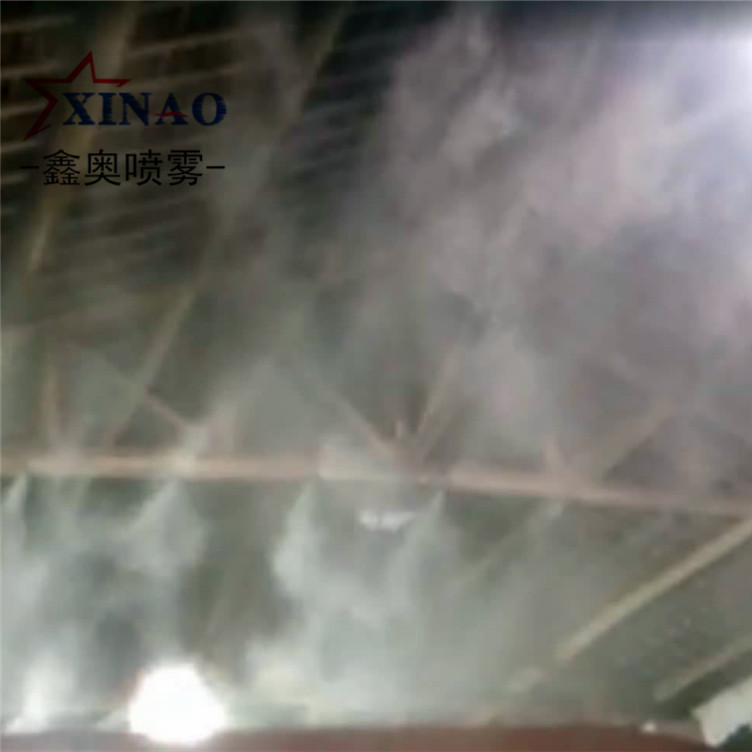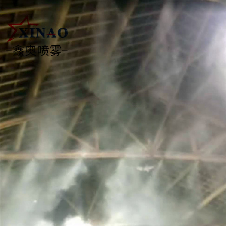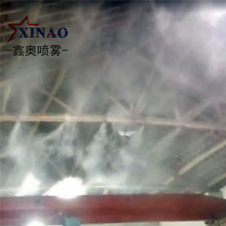 當各生產線運轉并載有物料時,干霧抑塵裝置噴霧系統開始噴霧或提早噴霧形成霧池。粉塵顆粒隨氣流運動時就會與水霧顆粒碰撞、接觸而粘結在一起墜落。使產生大量飛揚的細粉塵被抑制在密閉溜槽和導料槽內。此噴霧抑塵操作由遠在控制室的操作臺完成。這個遠程操作臺可以選擇“手動”或“自動”操作模式。在自動操作模式時,噴霧操作由可編程邏輯控制器(PLC)自動控制。