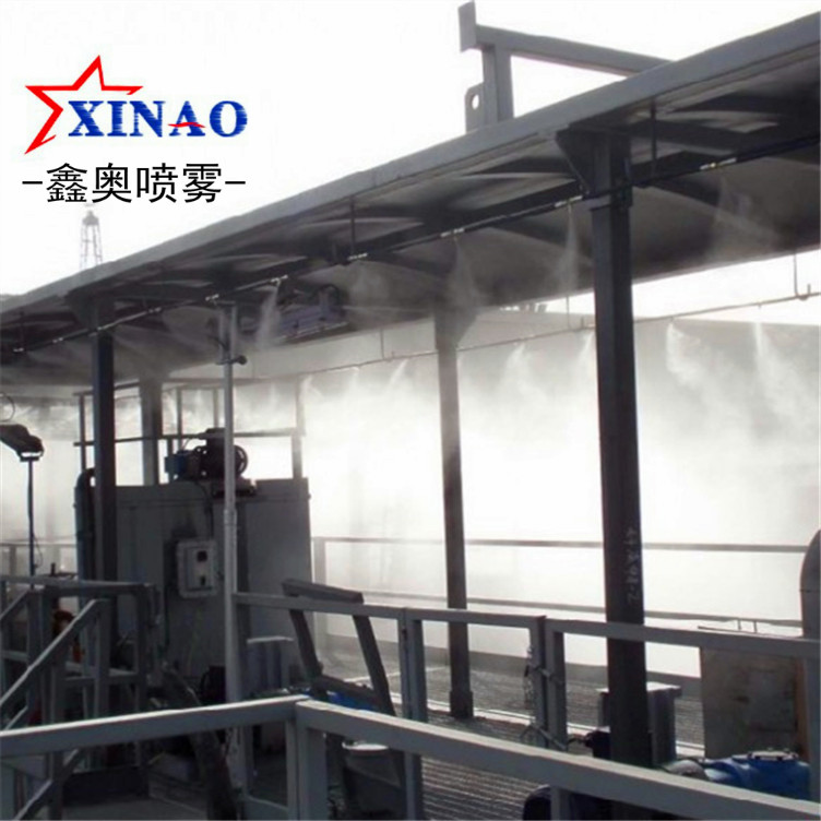 當各生產線運轉并載有物料時,干霧抑塵裝置噴霧系統開始噴霧或提早噴霧形成霧池。粉塵顆粒隨氣流運動時就會與水霧顆粒碰撞、接觸而粘結在一起墜落。使產生大量飛揚的細粉塵被抑制在密閉溜槽和導料槽內。此噴霧抑塵操作由遠在控制室的操作臺完成。這個遠程操作臺可以選擇“手動”或“自動”操作模式。在自動操作模式時,噴霧操作由可編程邏輯控制器(PLC)自動控制
