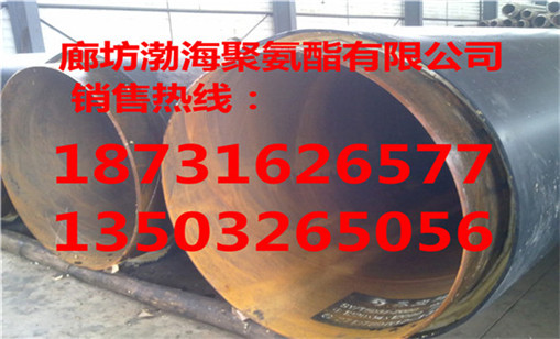 第二層:聚氨酯保溫層,用高壓發泡機在鋼管于外護層之間形成的空腔中一次性注入硬質聚氨酯泡沫塑料原液而成。即俗稱的“管中管發泡工藝”。其作用一是防水,二是保溫,三是支撐熱網自重。當輸送介質溫度為:-50℃—120℃時,選用硬質聚氨基脲酸酯泡沫塑料做保溫層。