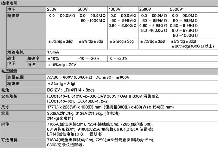 日本克列茨KYORITSU共立KEW3125A絕緣電阻測試儀/兆歐表 技術參數: