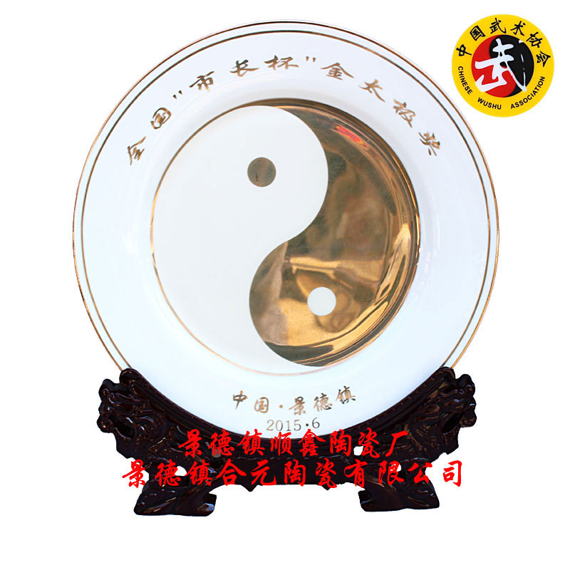 特點:頒獎陶瓷獎盤經過一千三百多度高溫燒制,強度好,不怕硬物劃刻、不褪色有著傳世收藏紀念的價值??申惲?,辦公室、書房、客廳、書架(易于觀賞獎盤)。該廠可以按照客戶要求定做獨特的頒獎陶瓷獎盤,彰顯珍貴(包括:器型、材質、圖案、LOGO、款式等)。