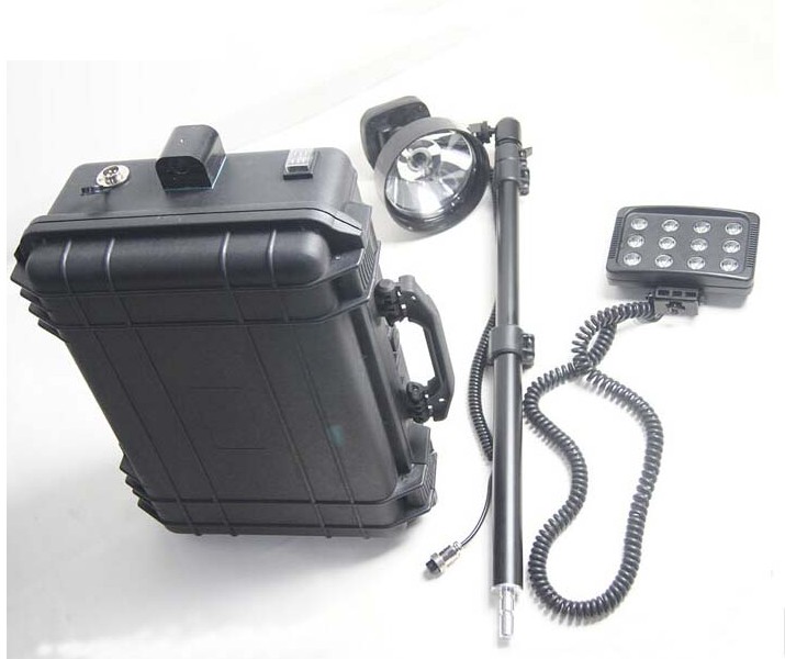 二、 防護等級:IP65,可以抵抗8級風力,確保燈具在各種惡劣環境下安全可靠工作;燈具整體裝入箱中,可隨意放置在車內,減少空間占用,且不會損傷燈具和車 內設施;燈具高度可根據現場需要高度范圍內任意調節,燈頭可單獨取下作為獨立移動照明光源進行現場勘察;照明時間長達40小時。