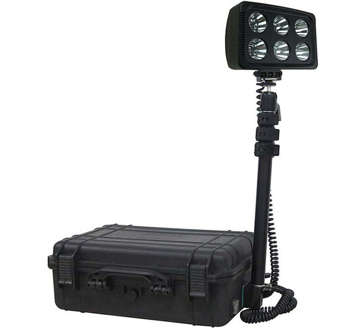 三、操作性和維護性:燈具為可組裝結構,燈頭、燈桿、電池、充電器可分體裝入手提箱,便于攜帶,使用現場可快速組裝,實現大面積照明;開關大按鈕設計,滿足冬天穿戴棉手套時仍方便操作燈具的需求。