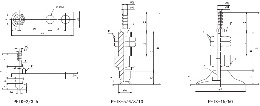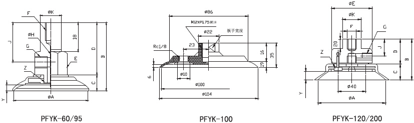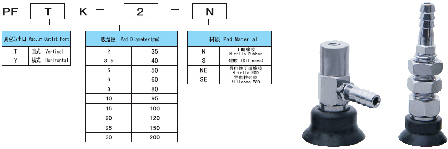 PF系列標準吸盤特征及優勢: 1.標準平型吸盤 2.適用于鋼板、板材、紙 箱等表面平整的吸附物。 3.吸附能力強大,穩定。 4.吸盤直徑:¢2,¢3.5,¢6,¢8,¢10,¢15,¢20,¢25,¢30,¢35,¢40,¢50,¢60,¢80,¢95,¢100,¢120,¢200。