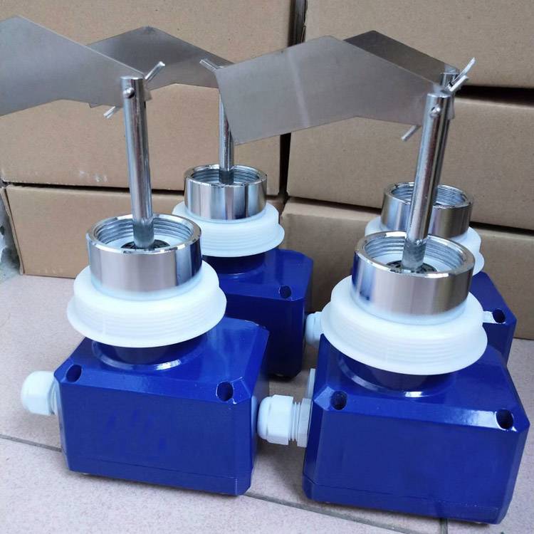 水泥倉罐料位計(jì)電壓DC24V料位控制器粉料倉罐上下限料位監(jiān)測報(bào)警裝置,可配套電箱使用。另外也有電壓220V的料位計(jì)。阻旋料位計(jì),也叫料位開關(guān)或料位控制器、阻旋料位開關(guān)等。阻旋式料位開關(guān)是采用交流微電機(jī)經(jīng)減速后,帶動(dòng)檢測葉片慢速旋轉(zhuǎn)。當(dāng)被測物料的料位上升使葉片的轉(zhuǎn)動(dòng)受到阻擋時(shí),檢測機(jī)構(gòu)主軸產(chǎn)生旋轉(zhuǎn)位移。此位移首先使一個(gè)微動(dòng)開關(guān)動(dòng)作,發(fā)出有料的信號(hào)。隨后另一個(gè)微動(dòng)開關(guān)動(dòng)作,切斷微電機(jī)的電源使其停止轉(zhuǎn)動(dòng)。只要倉內(nèi)的料位不變,此種狀態(tài)便將一直保持下去。