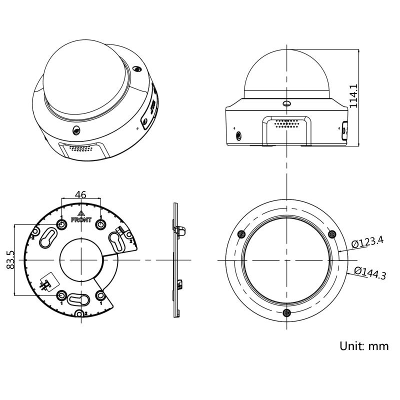 DS-2CD5147EFWDV2-IZYS 海康威視防腐蝕半球型網絡攝像機 產品尺寸: