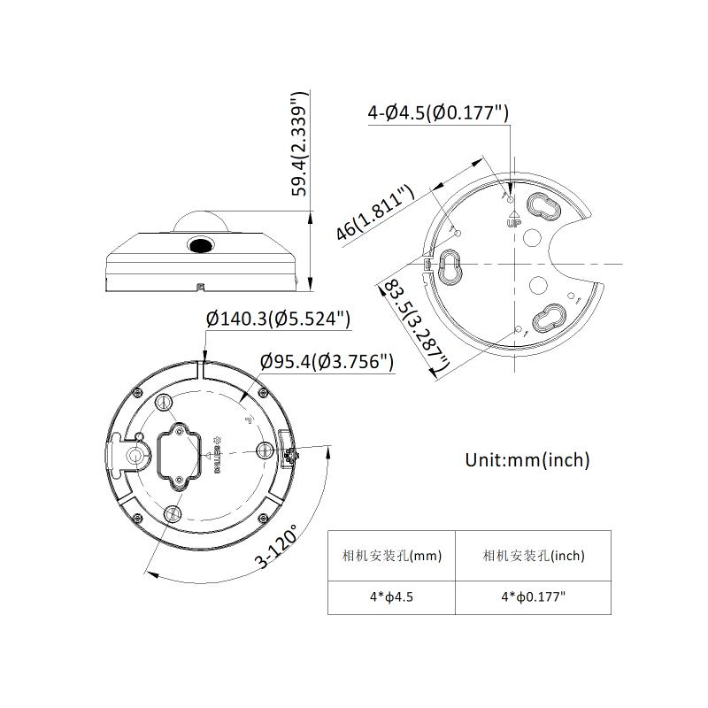 DS-2CD6365FV2/HC-IVS 海康威視600萬智能魚眼攝像機 產品尺寸:
