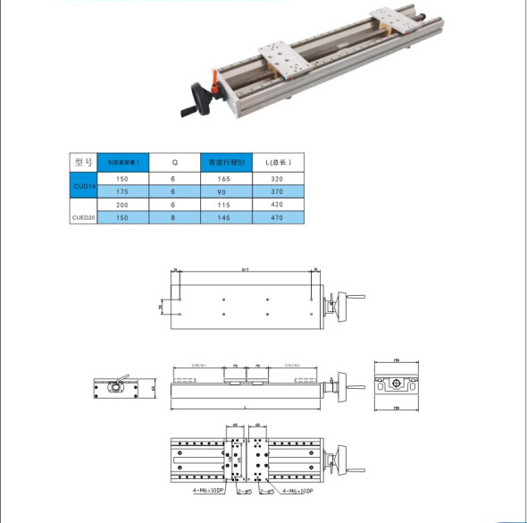 | CUE150標(biāo)準(zhǔn)型手動滑臺型號 | ||