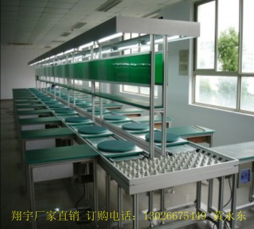 板鏈式裝配流水線特點:承載的產品比較重,和生產線同步運行,可以實現產品的爬坡;生產的節拍不是很快;以鏈板面作為承載,可以實現產品的平穩輸送。