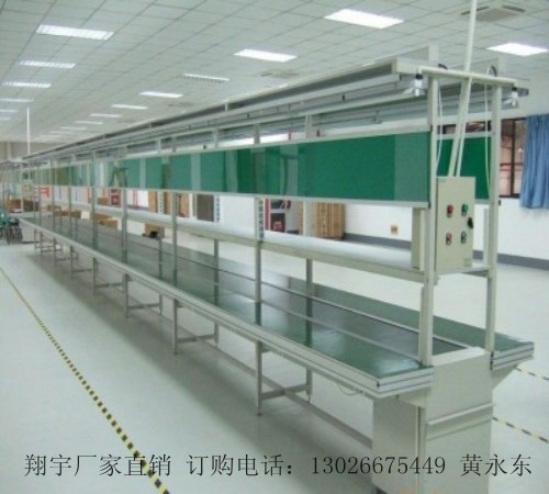 生產流水線是在一定的線路上連續輸送貨物搬運機械,又稱輸送線或者輸送機。按照輸送系列產品大體可以分為:皮帶流水線、板鏈線、倍數鏈線、插件線、網帶線、懸掛線及滾筒流水線這七類流水線。一般包括牽引件、承載構件、驅動裝置、張緊裝置、改向裝置和支承件等。流水線輸送能力大,運距長,還可在輸送過程中同時完成若干工藝操作,所以應用十分廣泛。